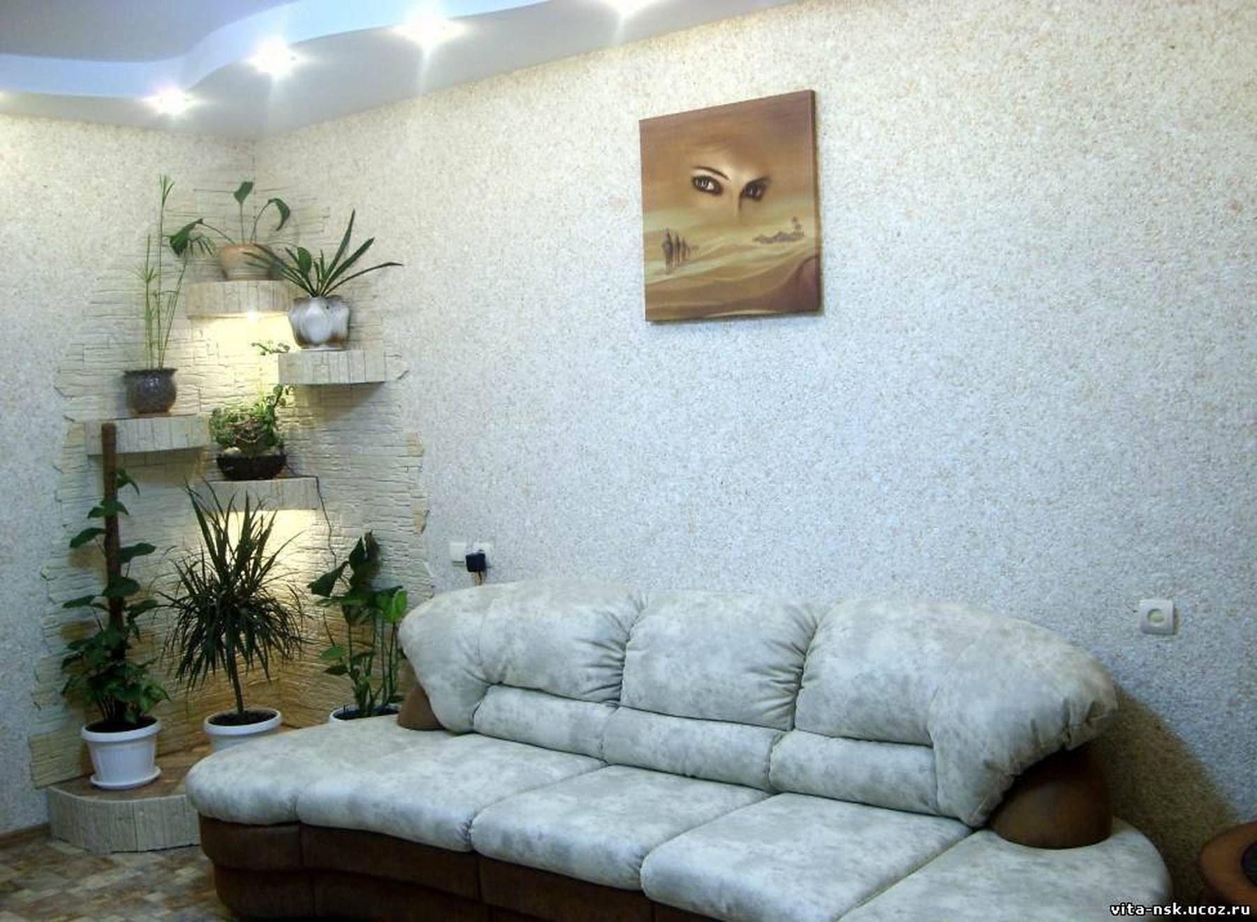 Жидкие обои в интерьере гостиной