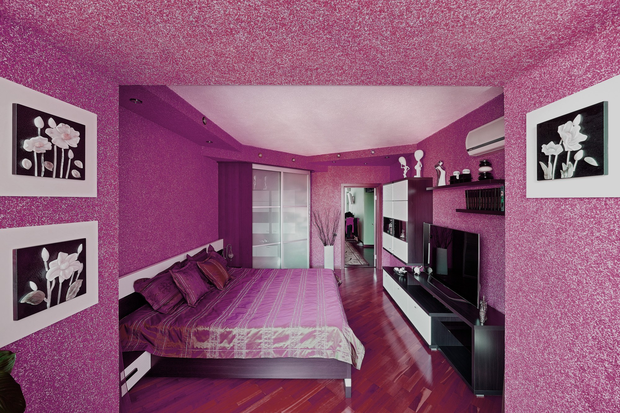Жидкие обои в интерьере спальни