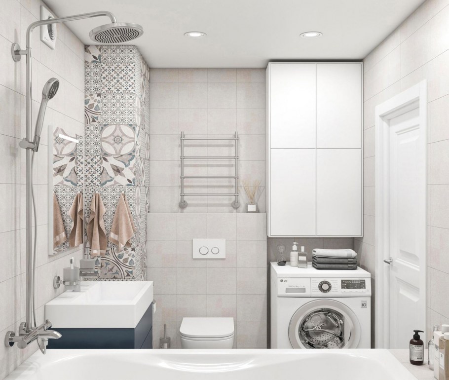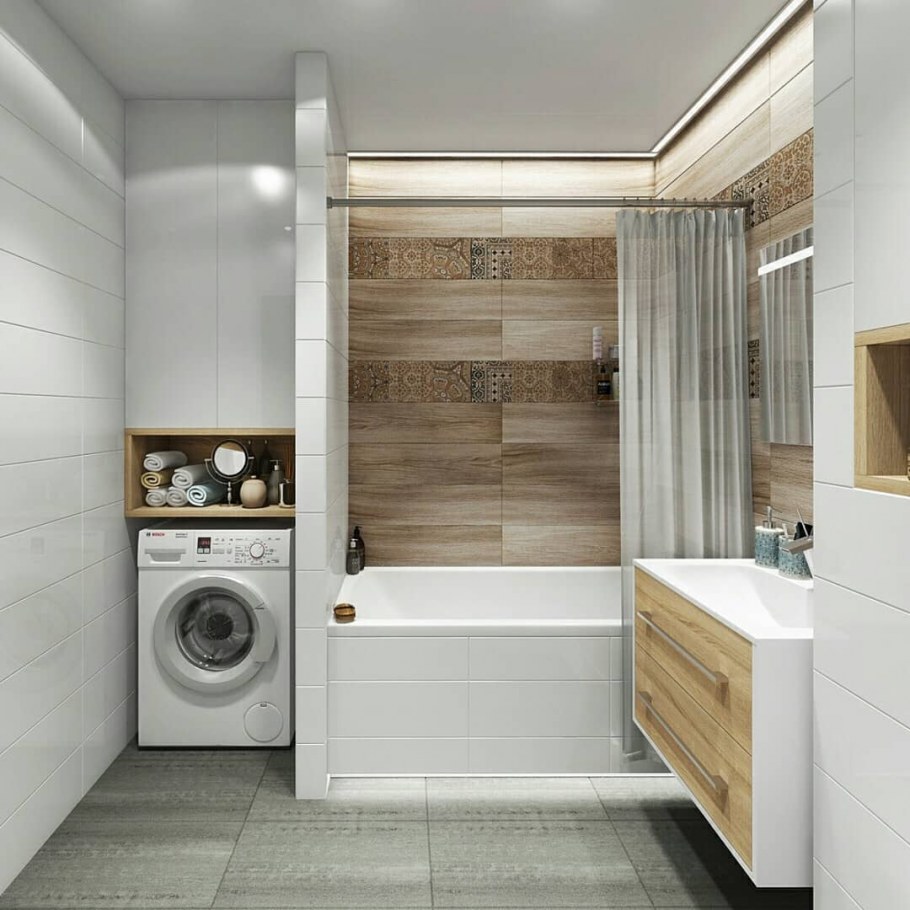 Ванная 4 кв м в скандинавском стиле со стиральной машиной
