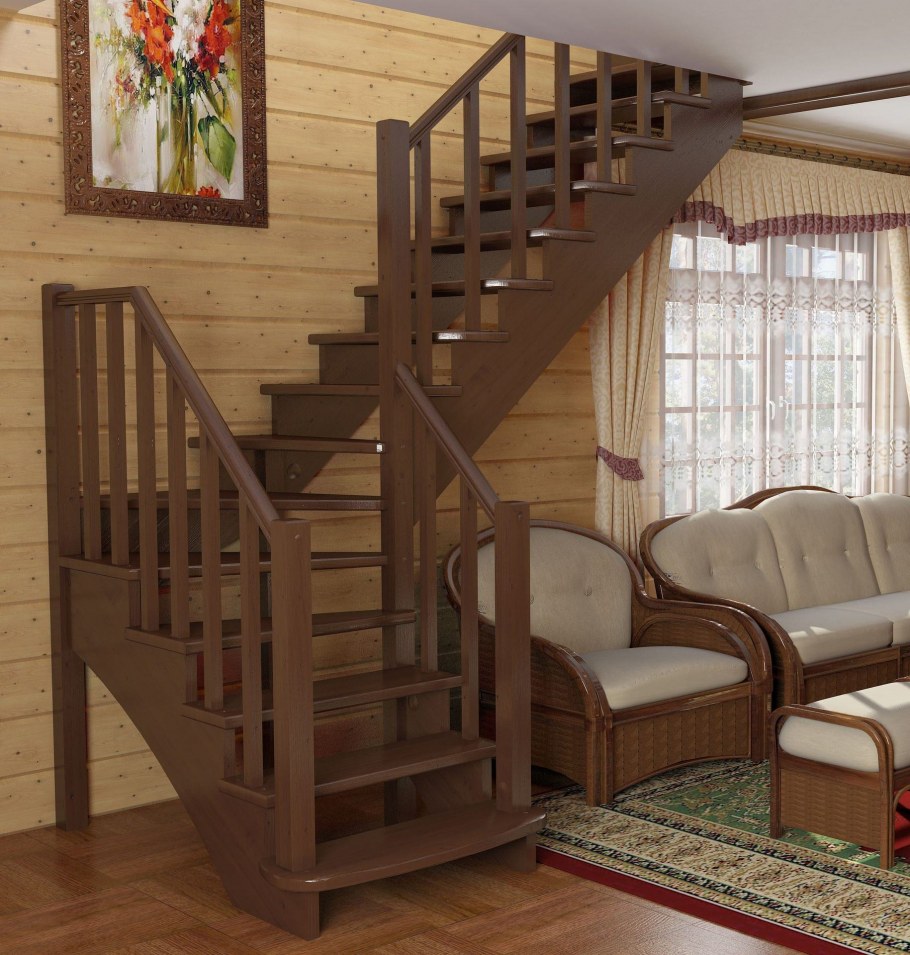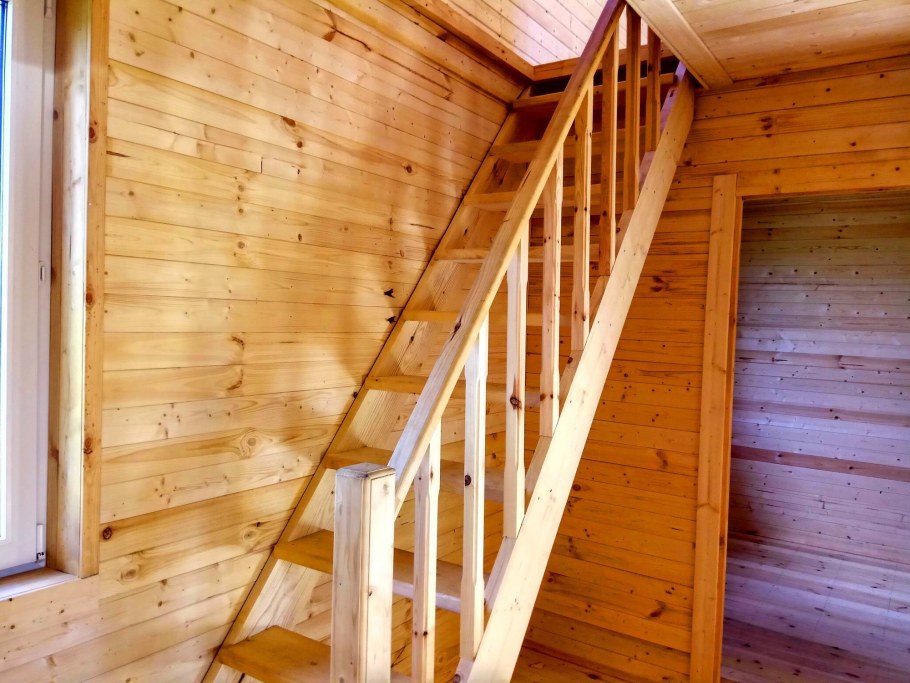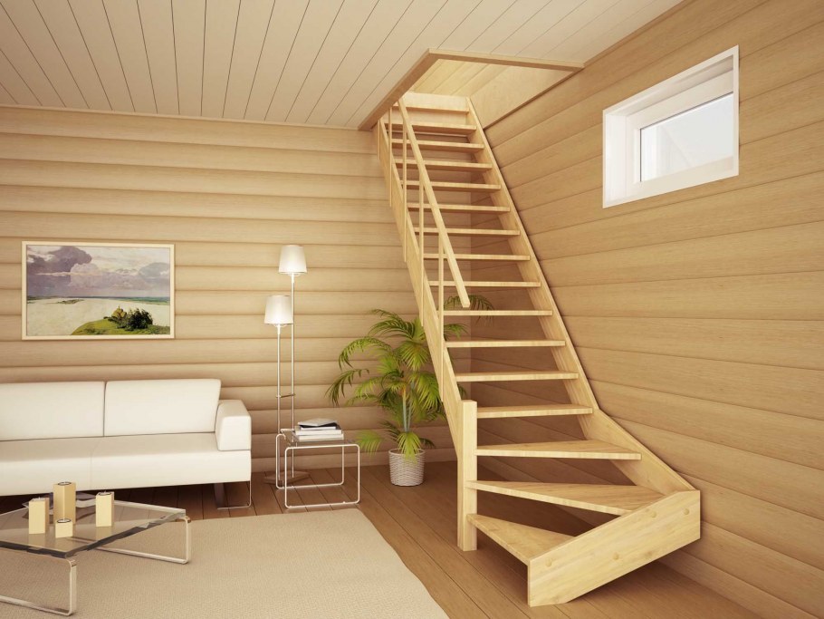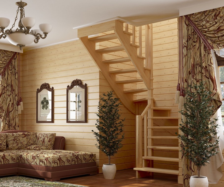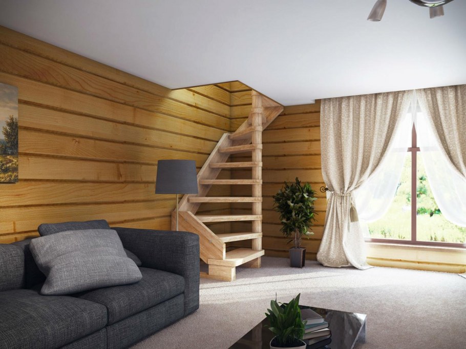 Лестница на второй этаж деревянная на даче в маленьком помещении (73 фото)