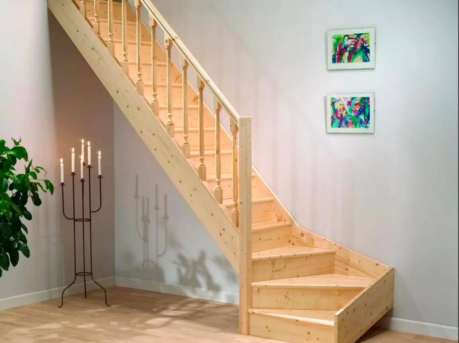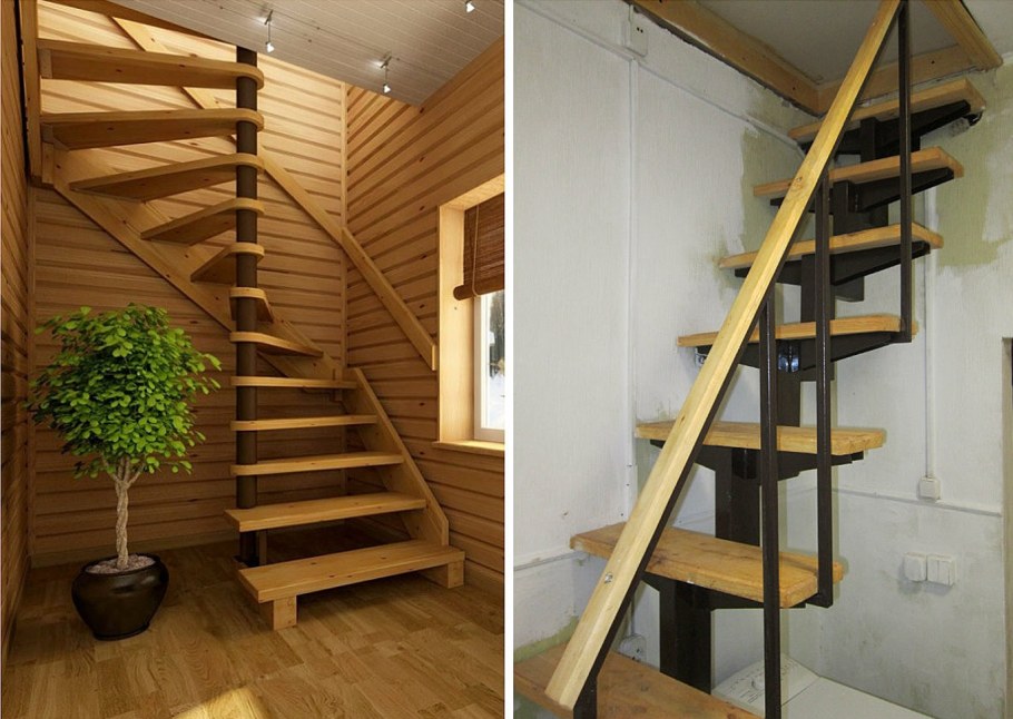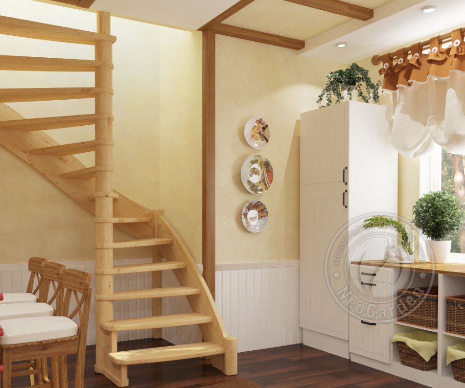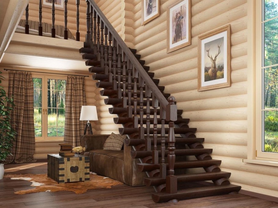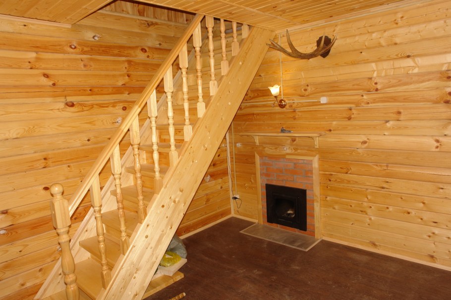 Лестница на второй этаж деревянная на даче в маленьком помещении (73 фото)