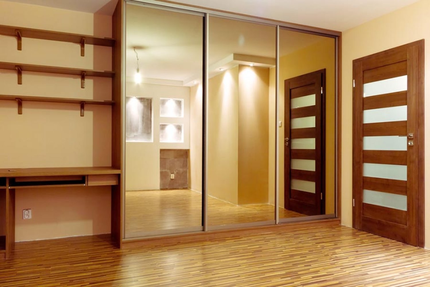 Двери купе для встроенного шкафа в интерьере (78 фото)