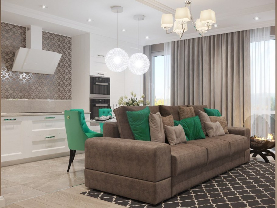 Коричнево бирюзовая гостиная