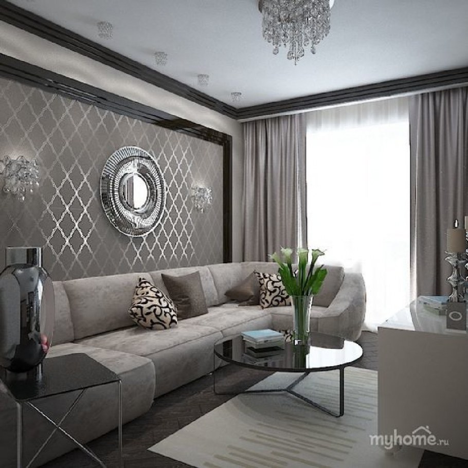 Интерьер гостиной в серебристых тонах