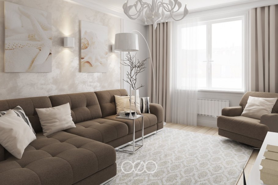 Бежево коричневая гостиная