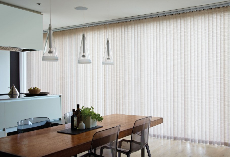 Вертикальные жалюзи в интерьере кухни-гостиной