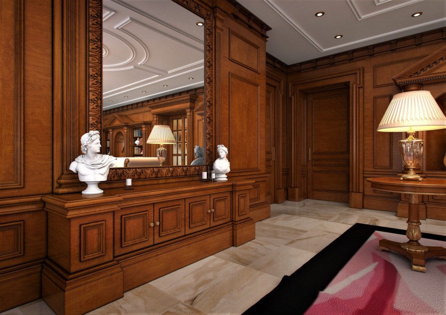 Все стены кабинета украшены резными деревянными панелями (78 фото)