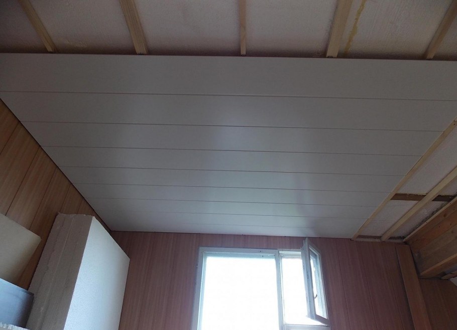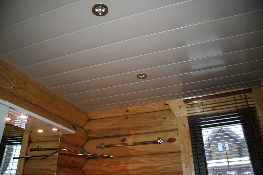Потолок из ПВХ панелей в деревянном доме