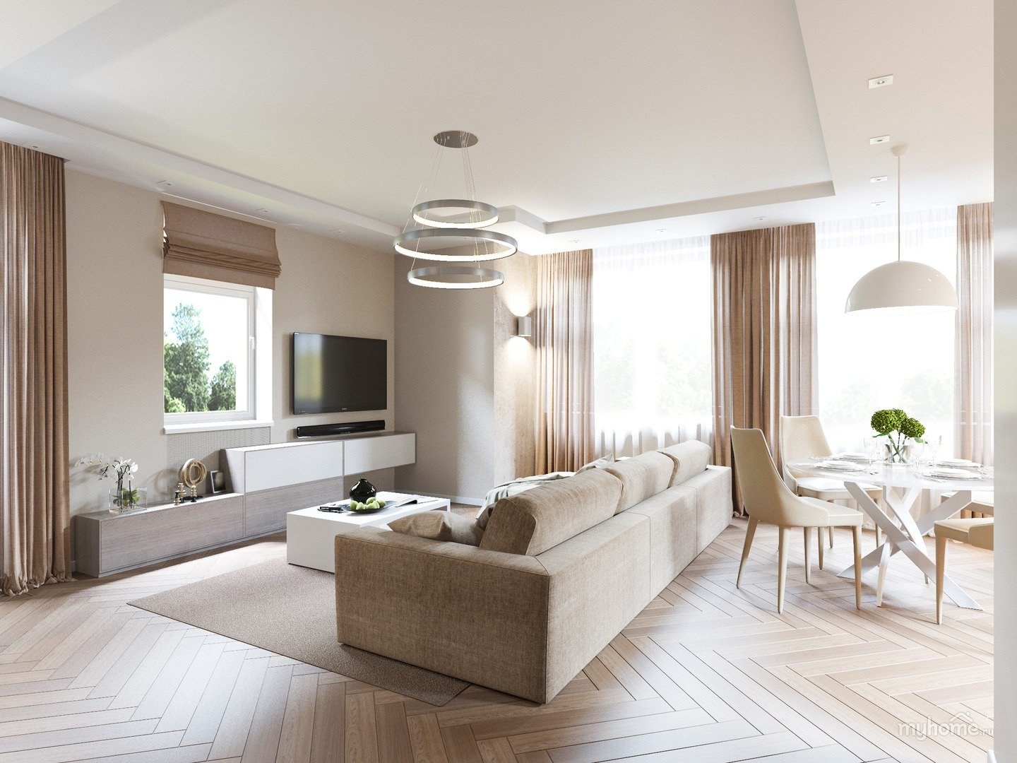 Современный дизайн интерьера дома в светлых тонах (79 фото)