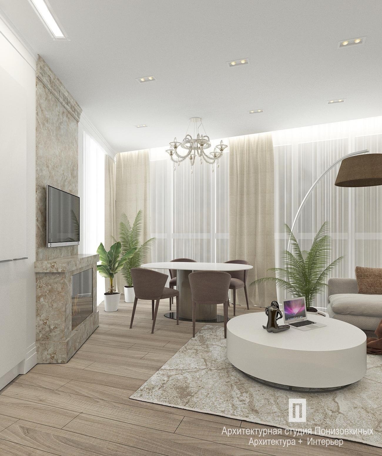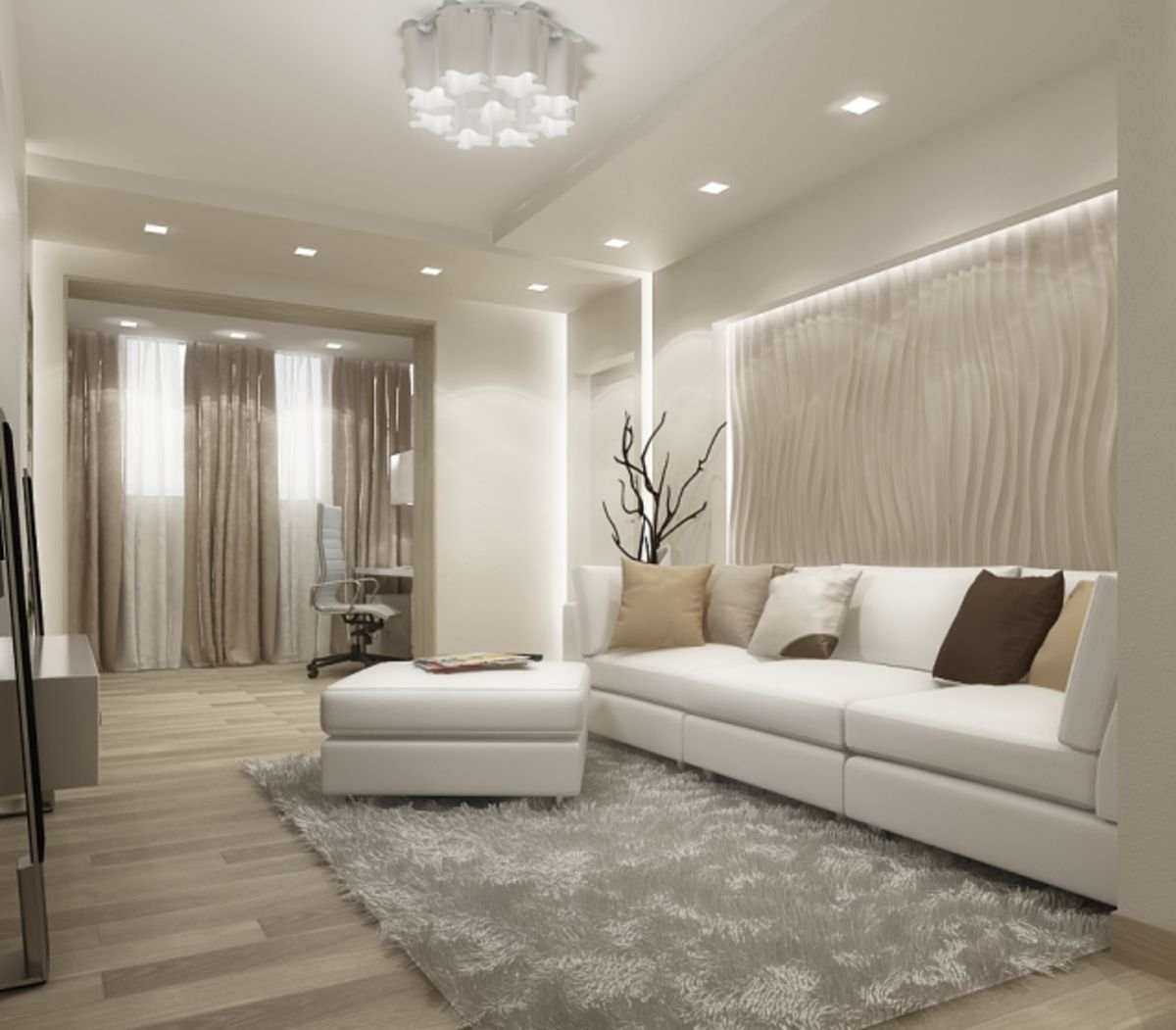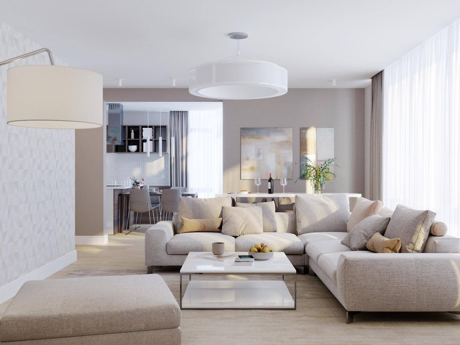 Современная гостиная в светлых тонах