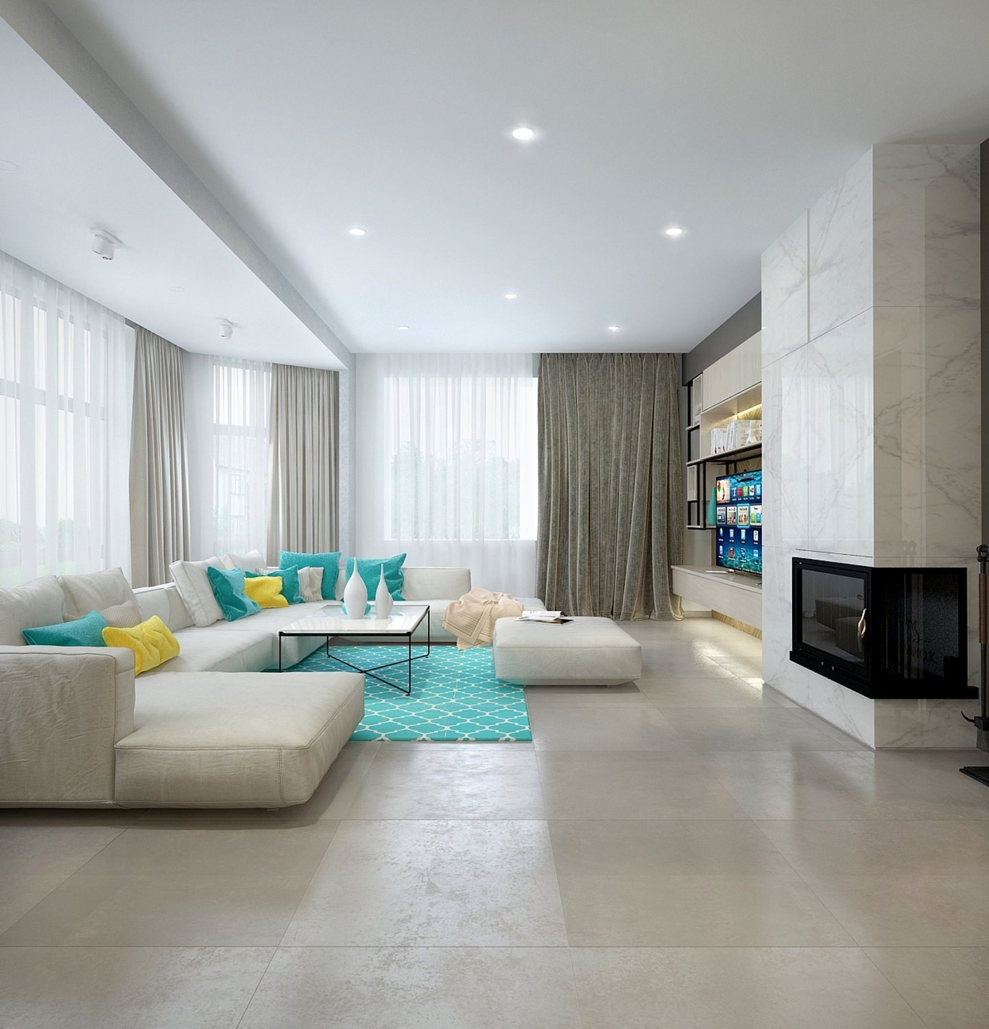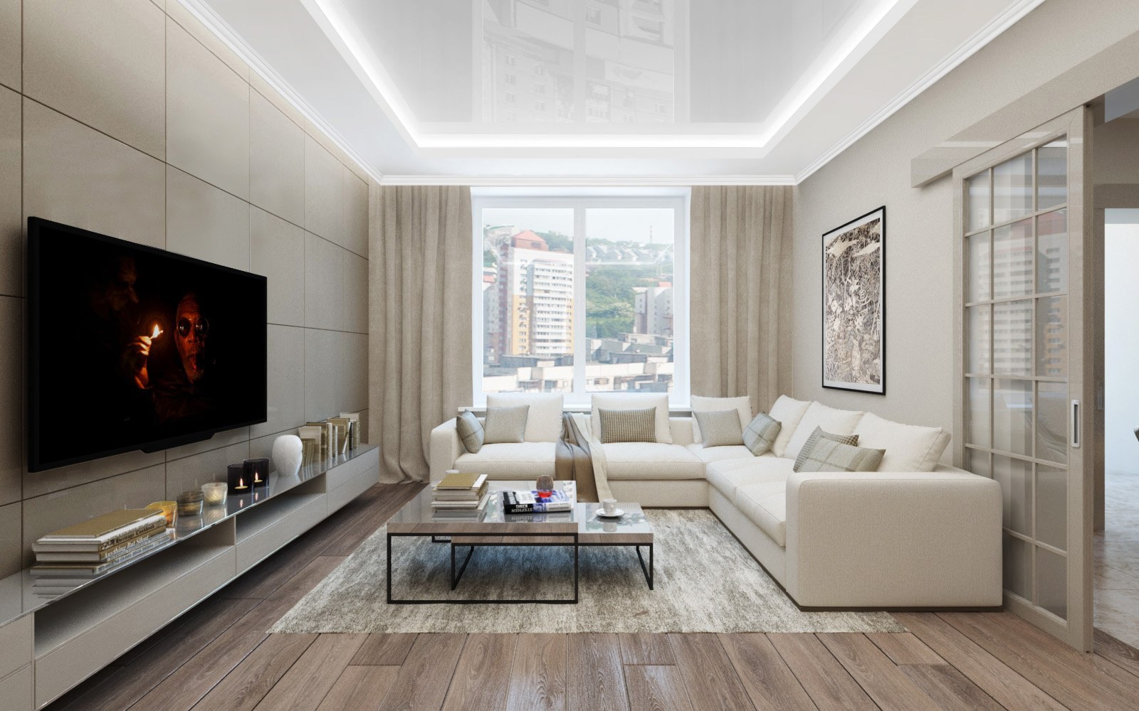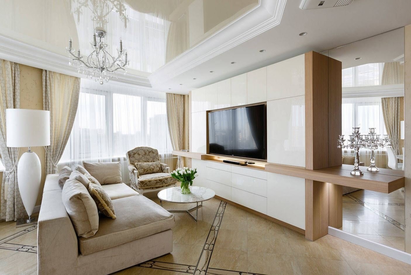 Современная гостиная в светлых тонах