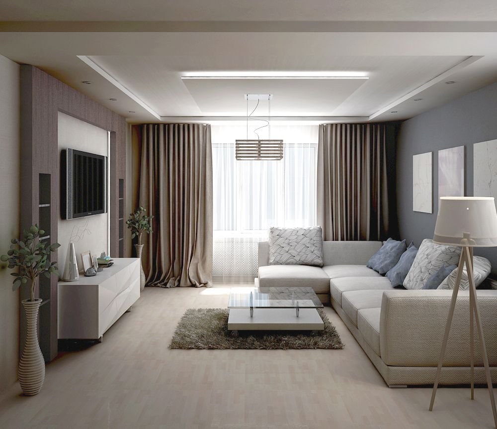 Современный интерьер гостиной в светлых тонах