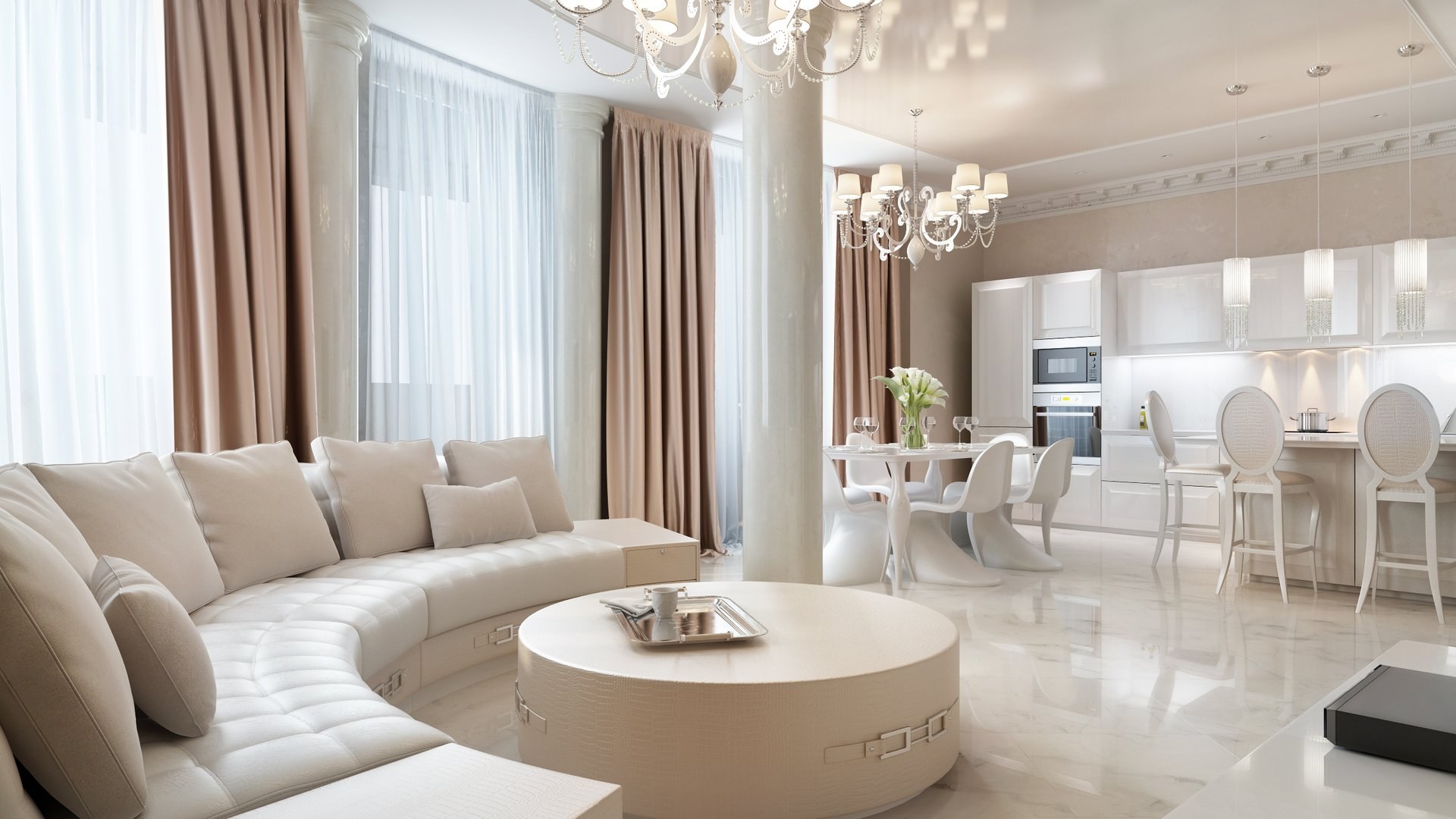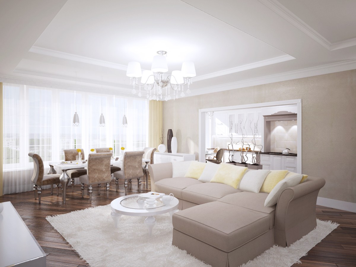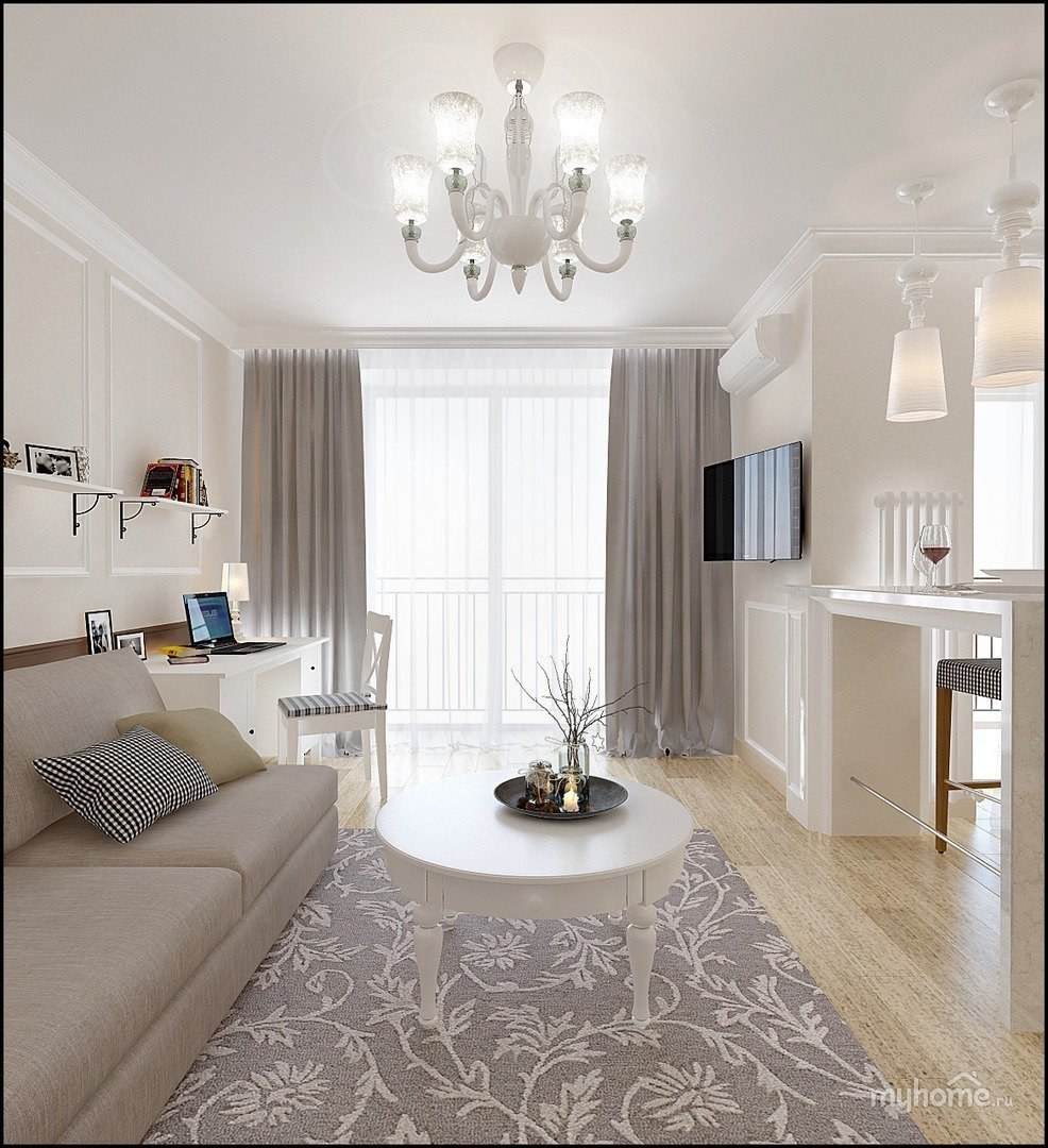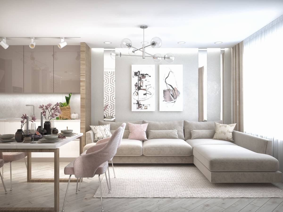 Кухня гостиная в светлых тонах