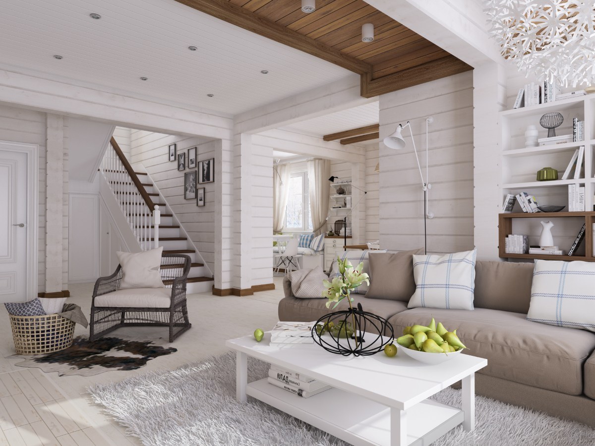 Светлая гостиная в загородном доме