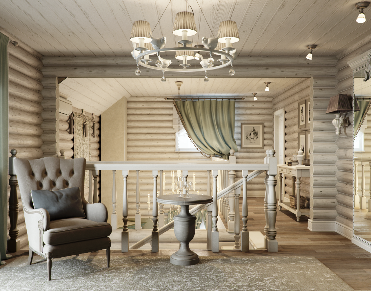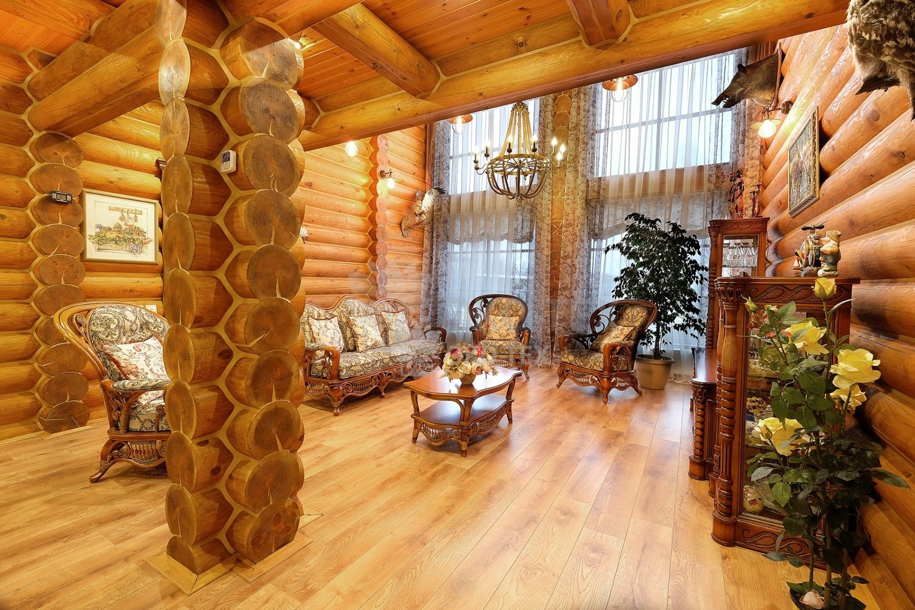 Интерьер дома из оцилиндрованного бревна