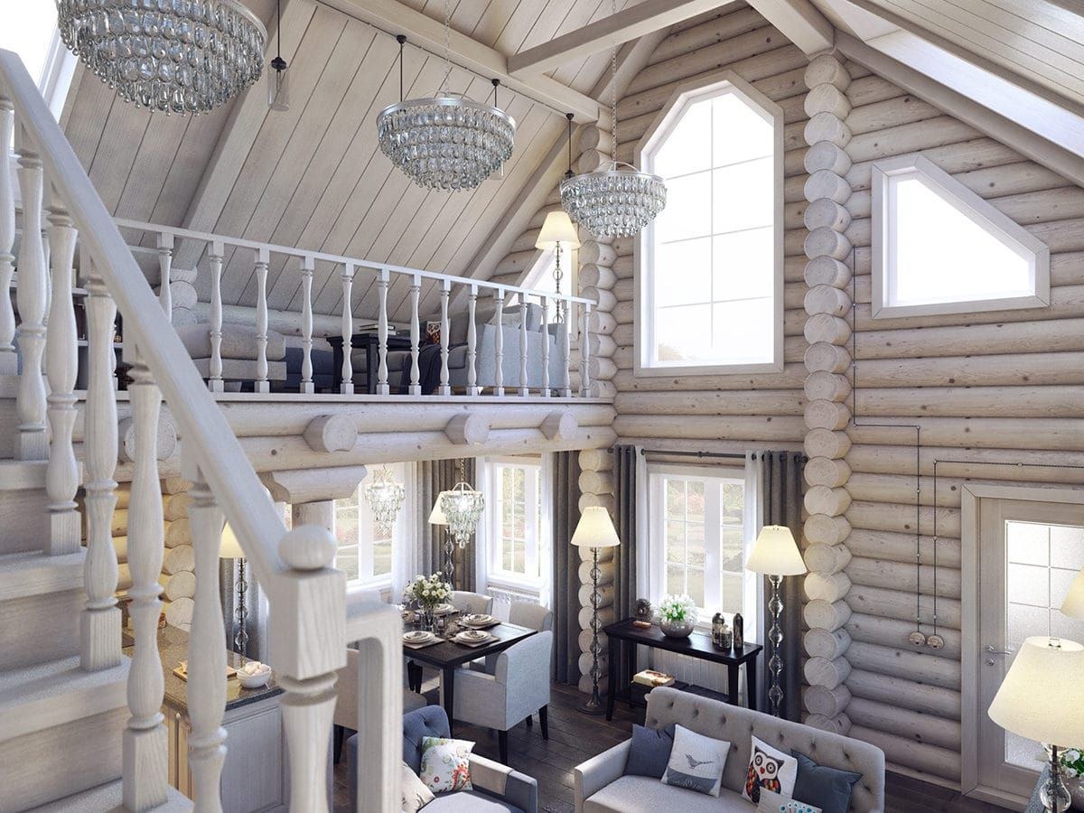 Дизайн дома из оцилиндрованного бревна внутри (80 фото)