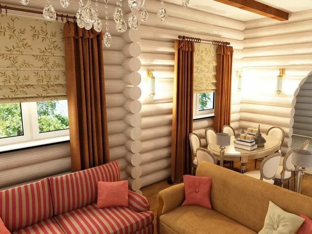 Интерьер гостиной в доме из бревна