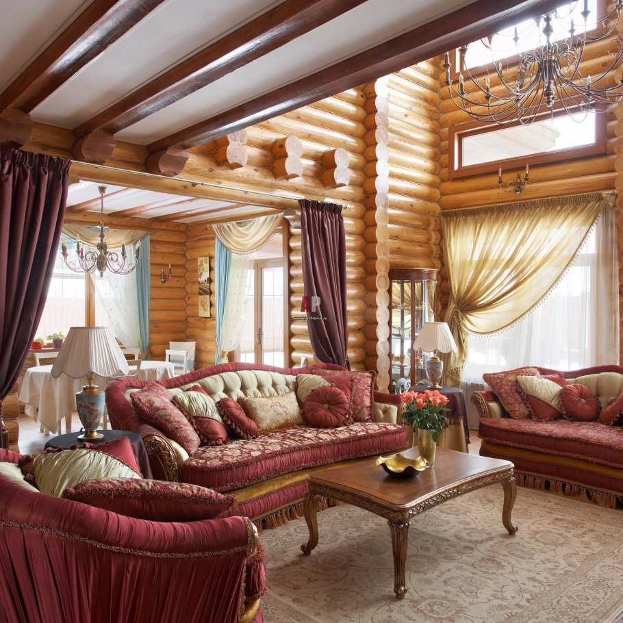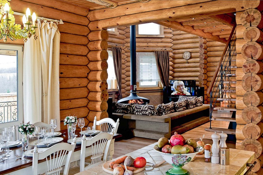 Интерьер деревянного дома из бревна