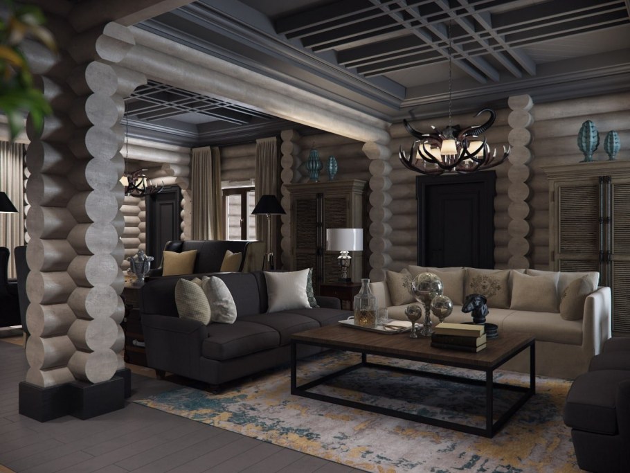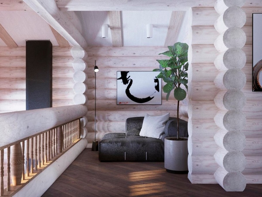 Современный интерьер в бревенчатом доме