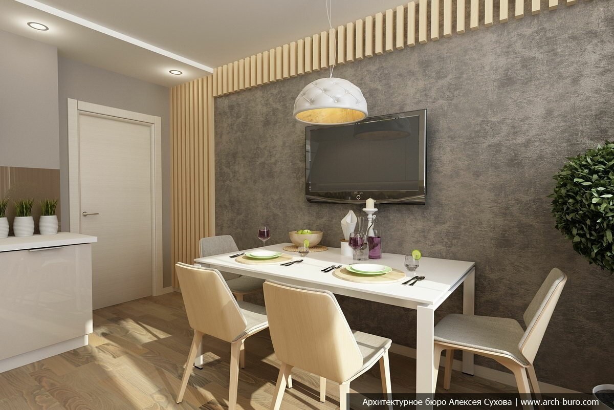 Декоративная штукатурка в кухне гостиной