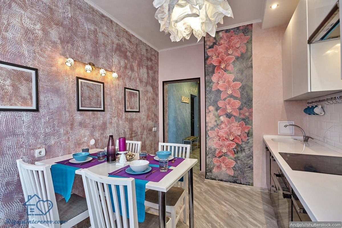 Обои в интерьере кухни
