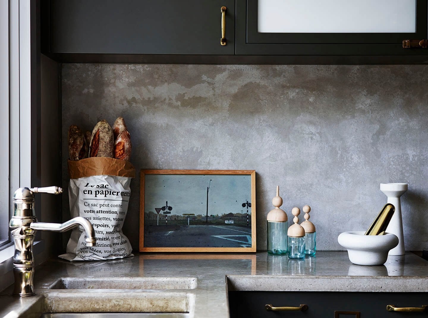Декоративная штукатурка под бетон на кухне