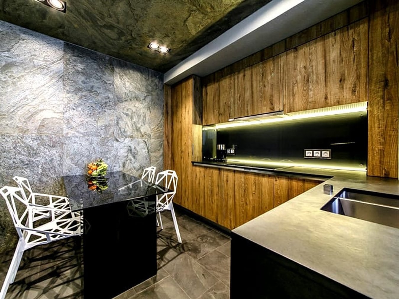 Отделка кухни декоративным камнем