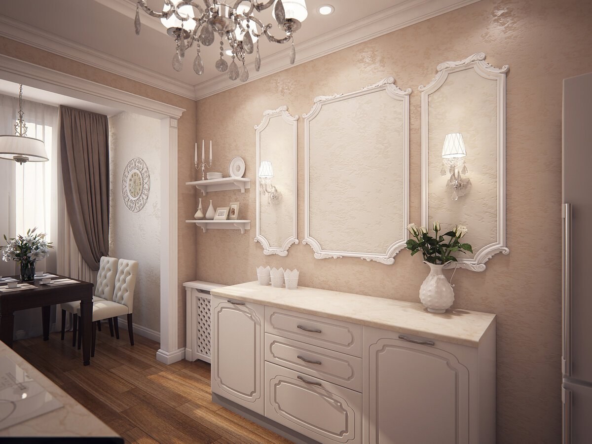 Бежевые стены на кухне
