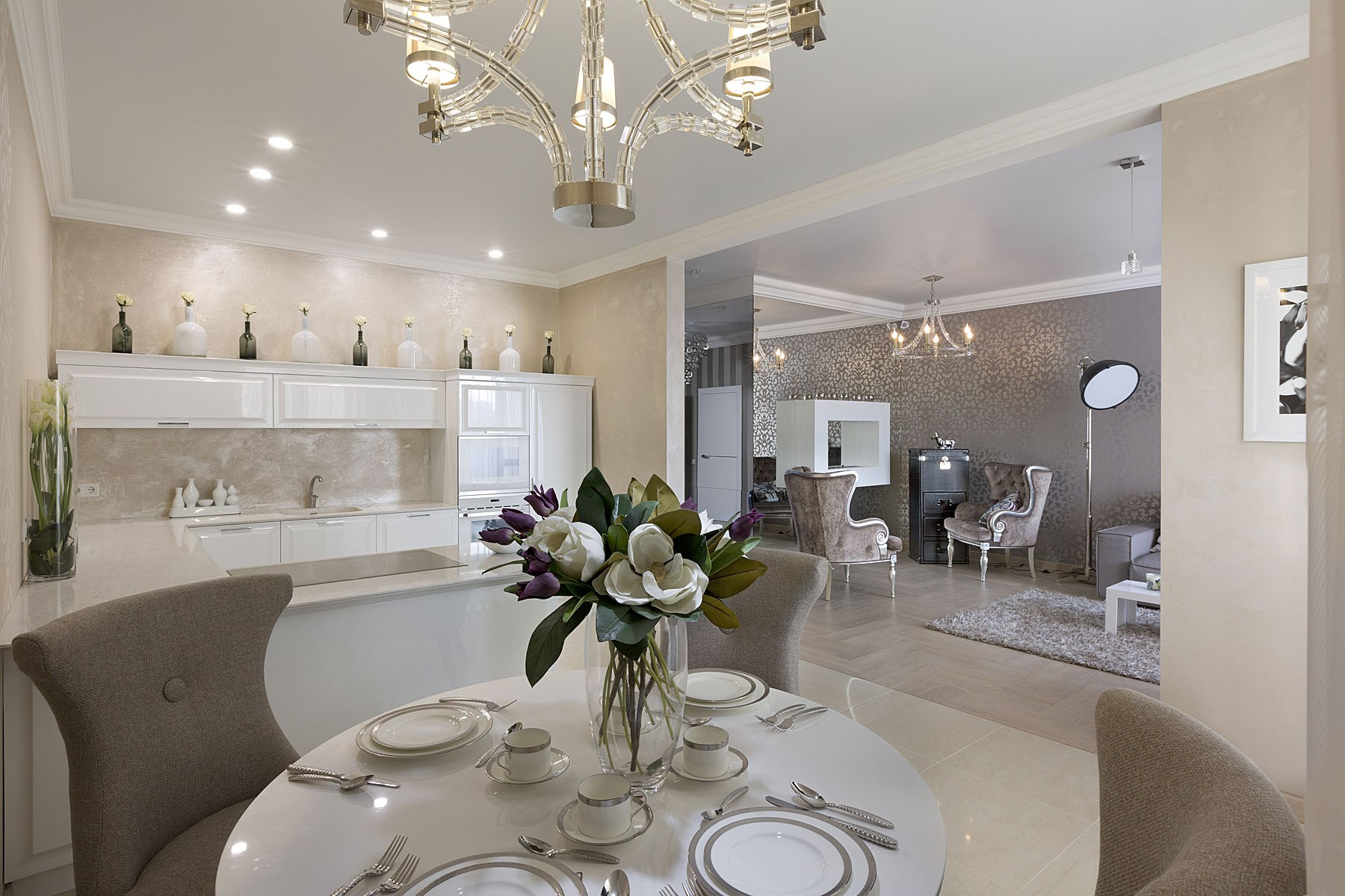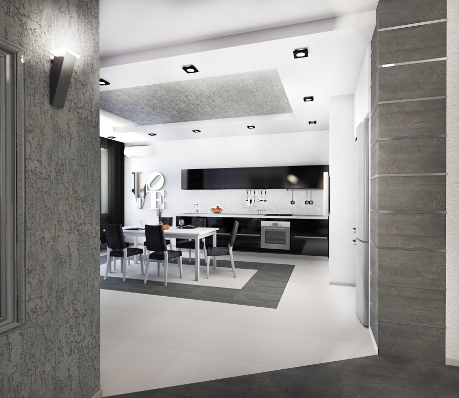 Кухня гостиная с венецианской штукатуркой