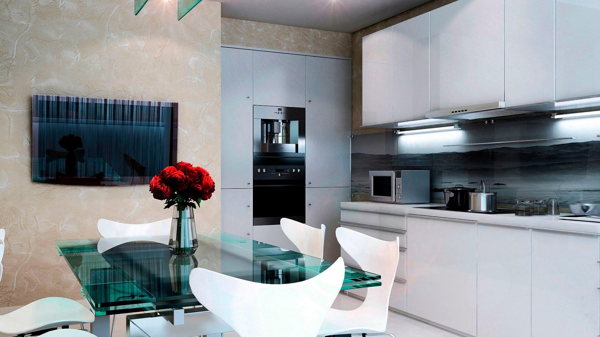 Белая декоративная штукатурка на кухне