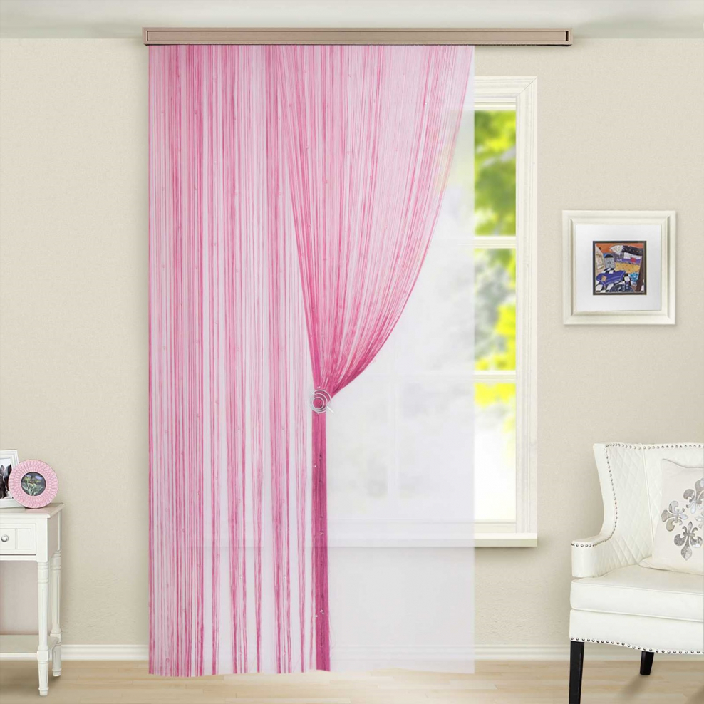 Штора кисея однотон. 290*290см с бусами,гр.розовая scв11 11206