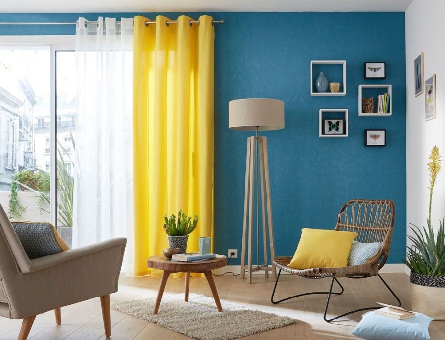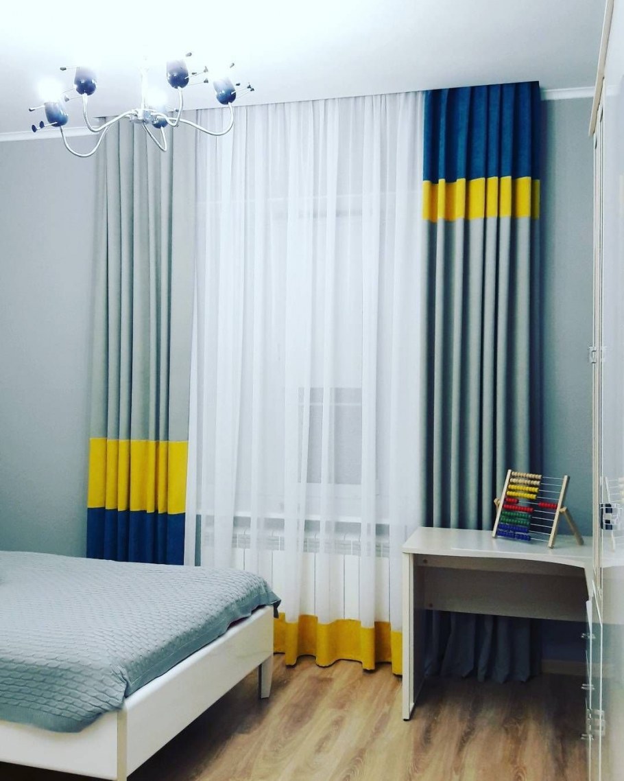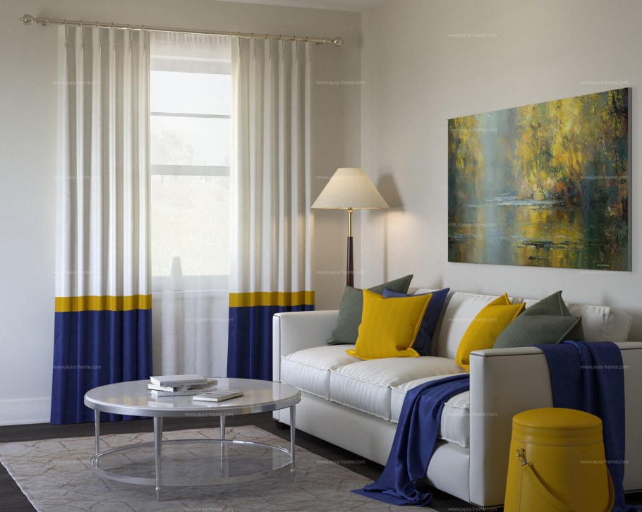 Сине желтые шторы в интерьере