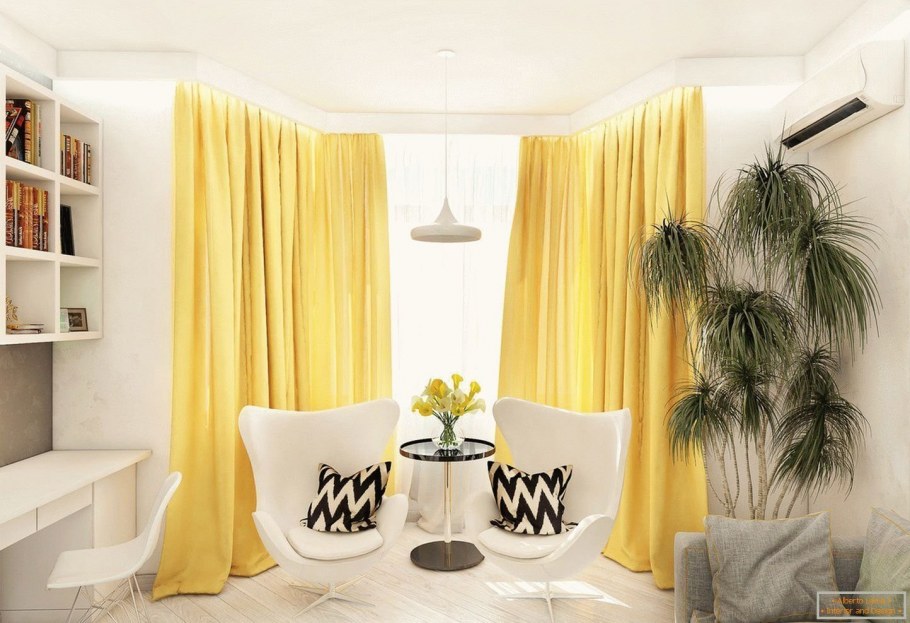 Лимонные шторы в интерьере