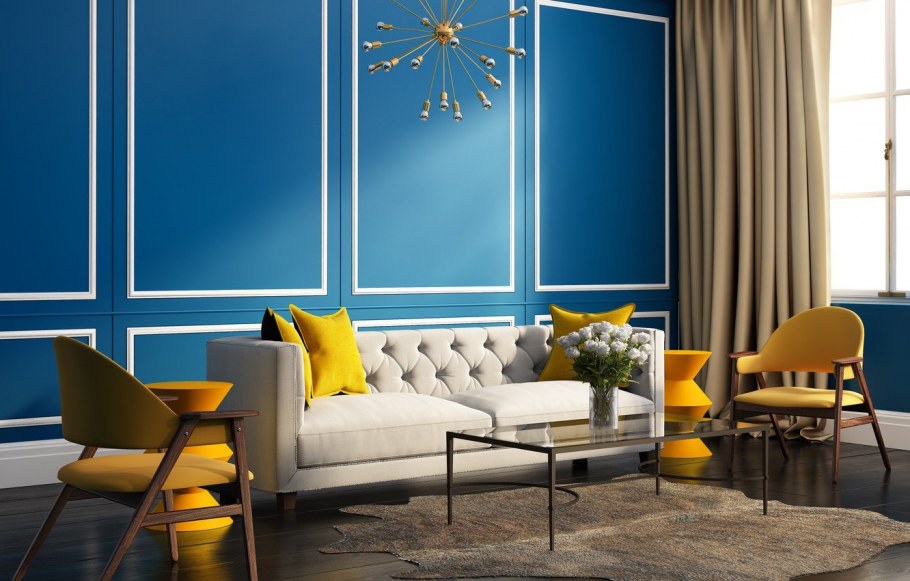 Гостиная с желтым и синим акцентом
