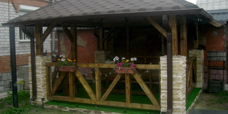 Деревянная беседка с мангальной зоной