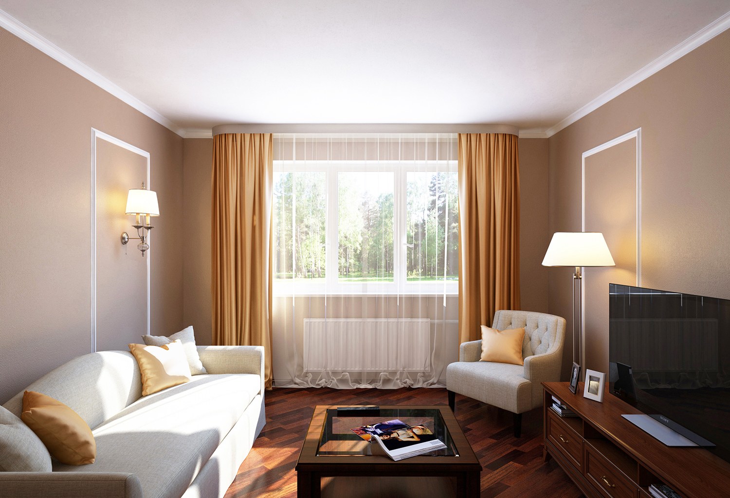 Бежевые шторы в гостиной
