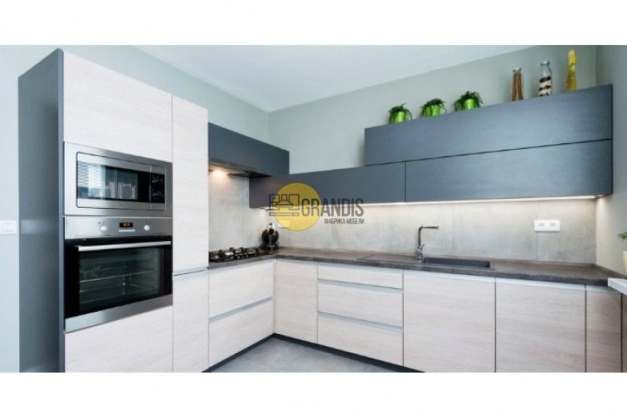 Кухня серая с бежевым