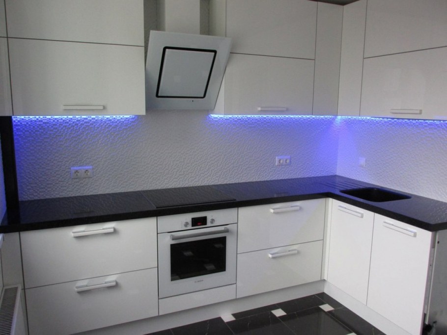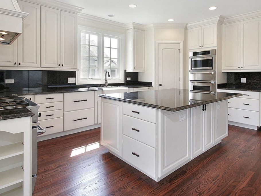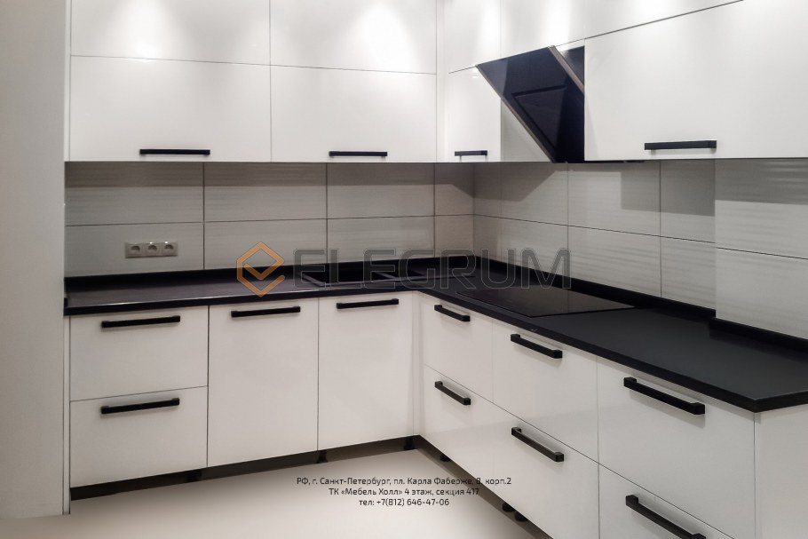 Белый кухонный гарнитур с темной столешницей (80 фото)