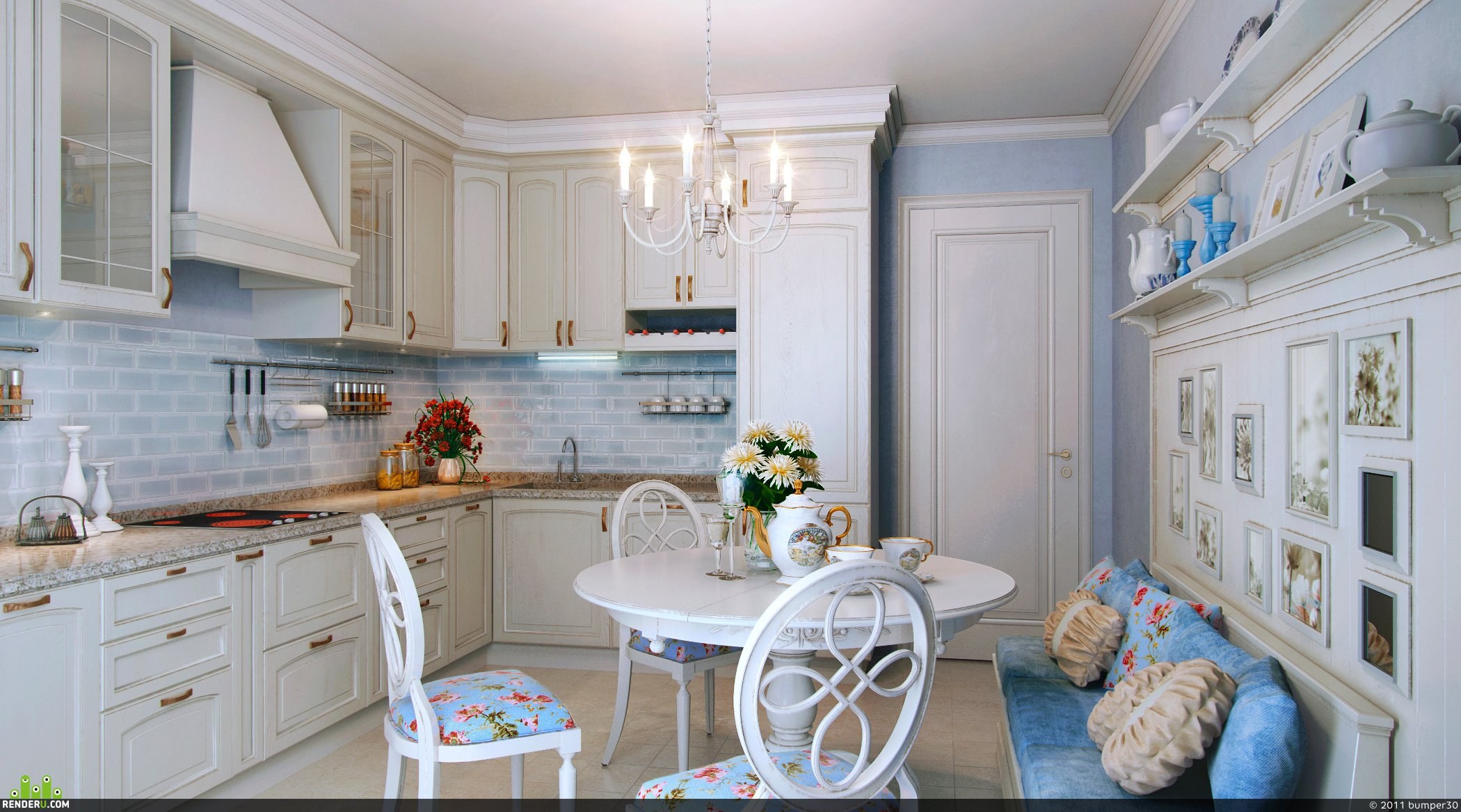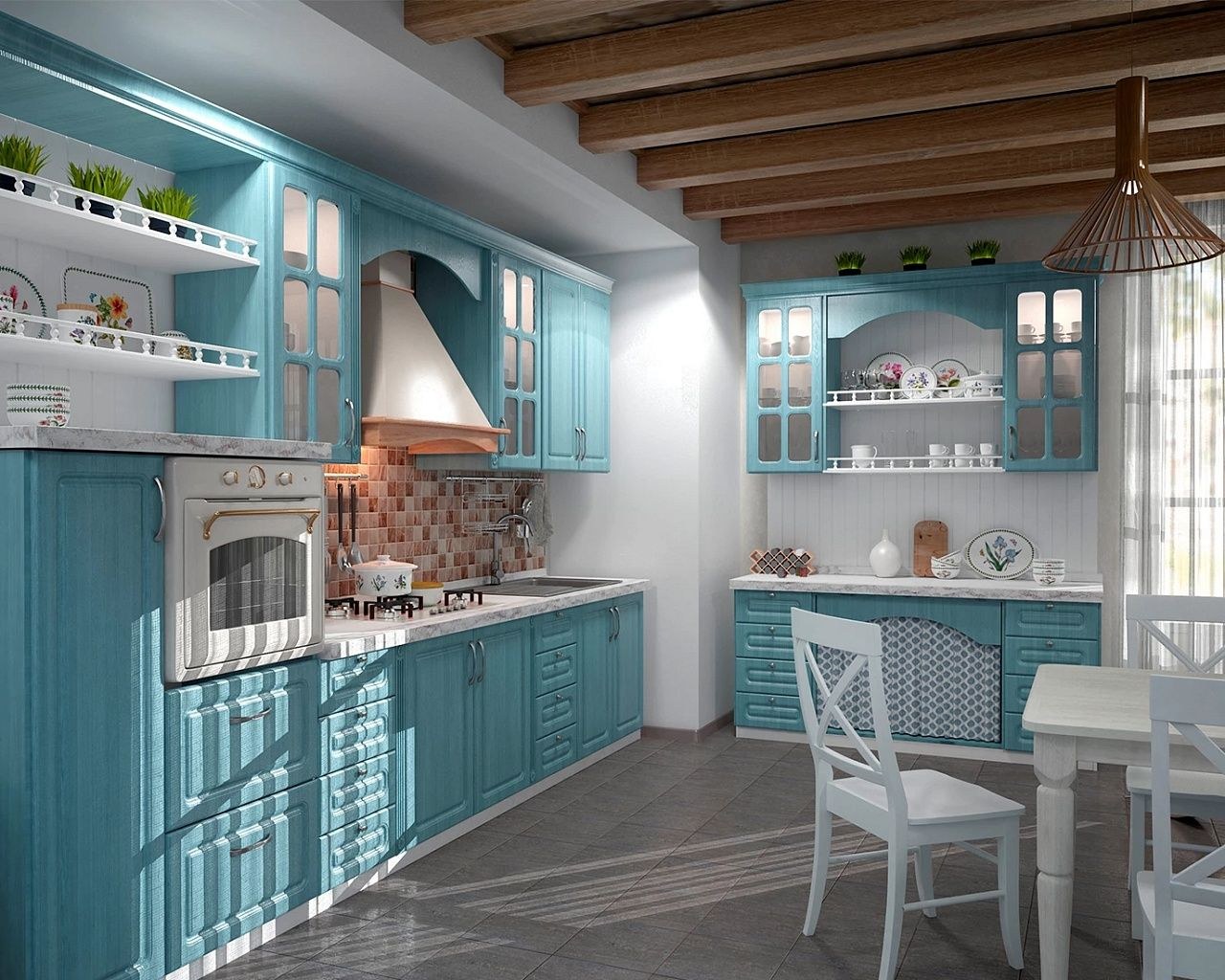 Голубая кухня в стиле Прованс