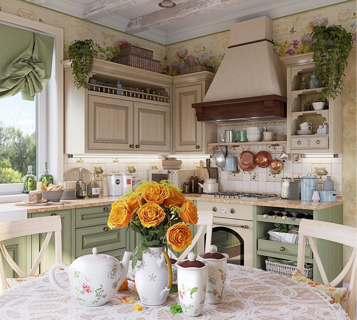 Кухонный гарнитур в стиле прованс в маленькой кухне (77 фото)