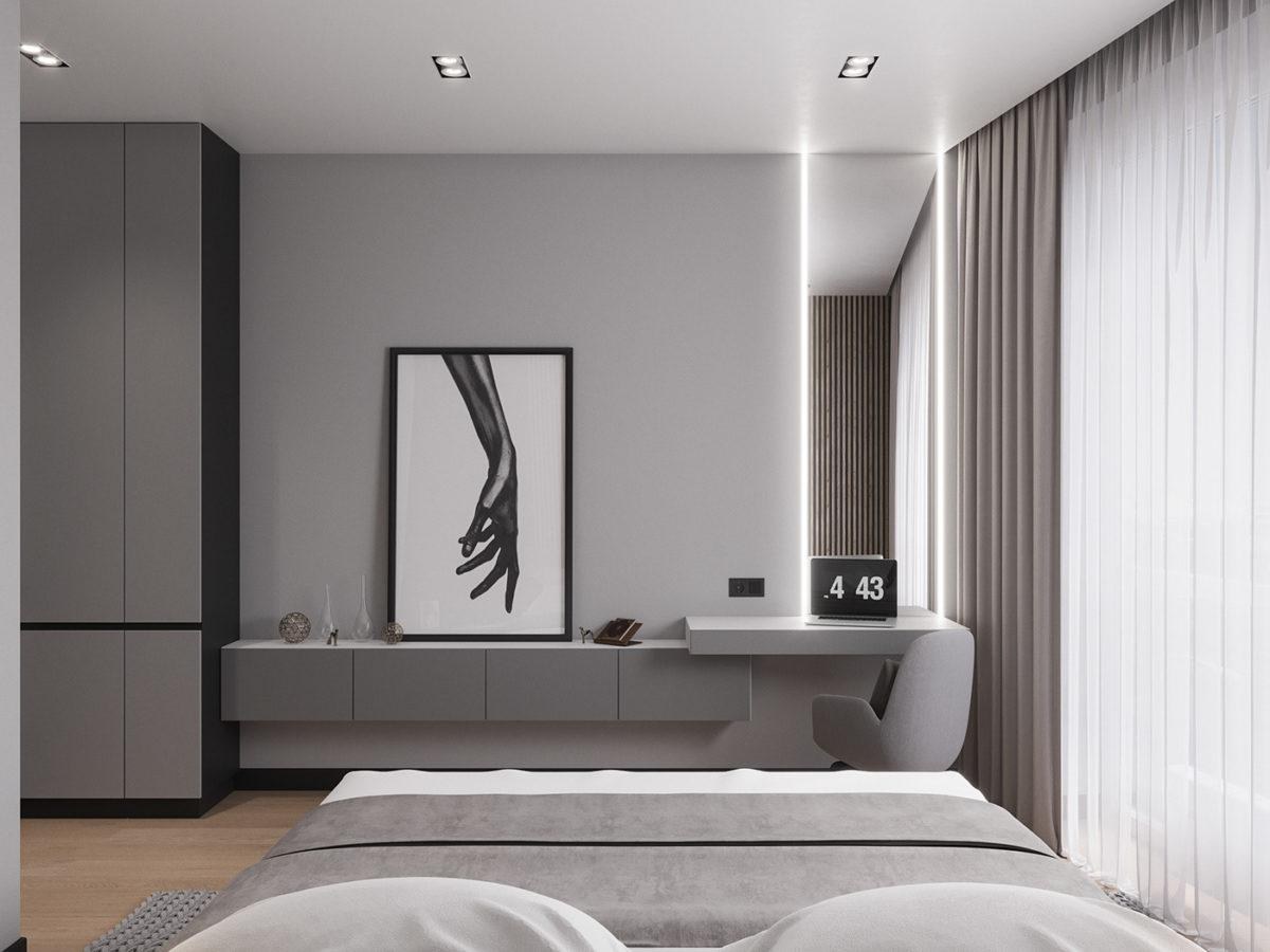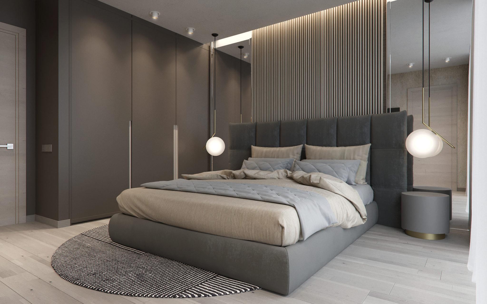 Спальня в современном стиле в серых тонах