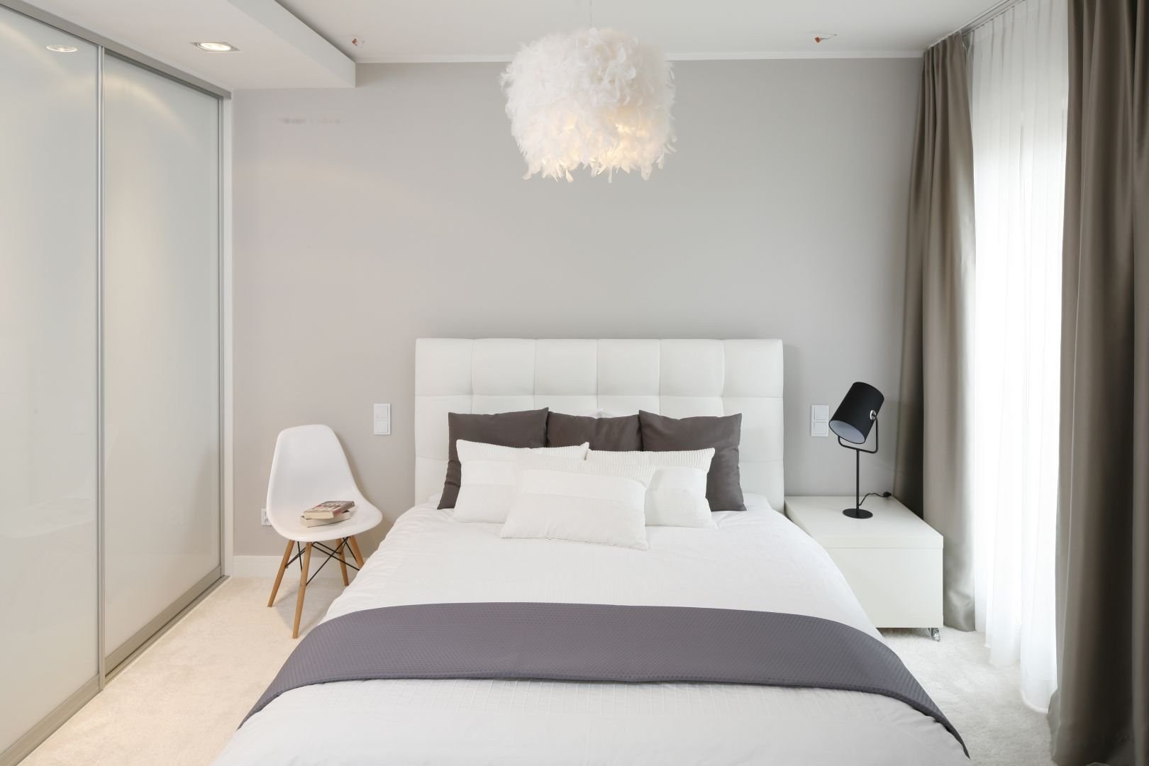 Бело серая спальня