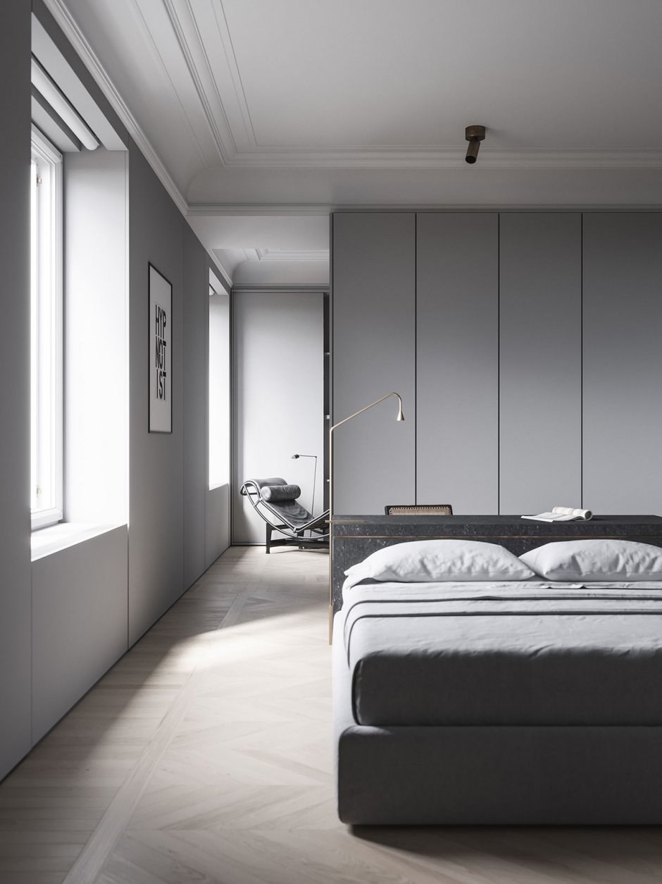 Спальня в серых тонах минимализм (78 фото)