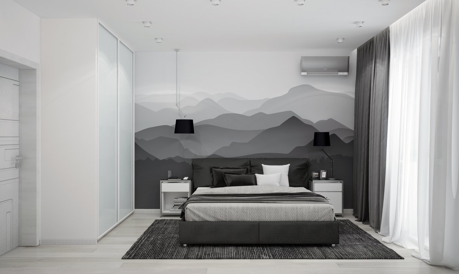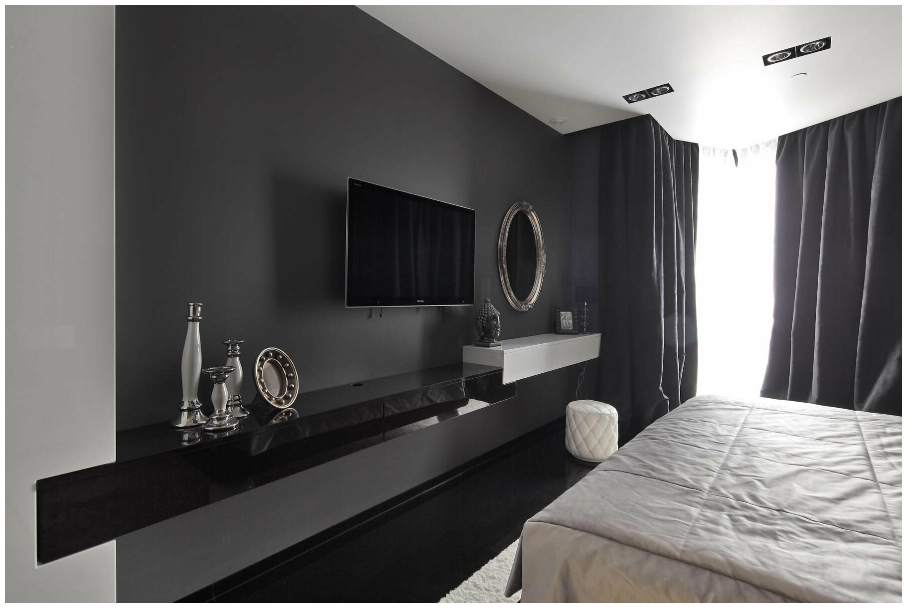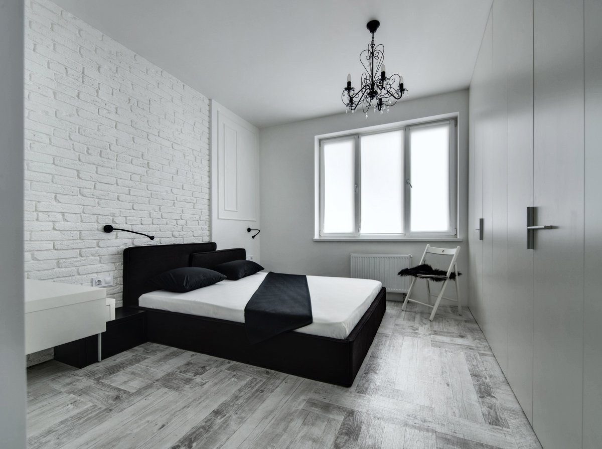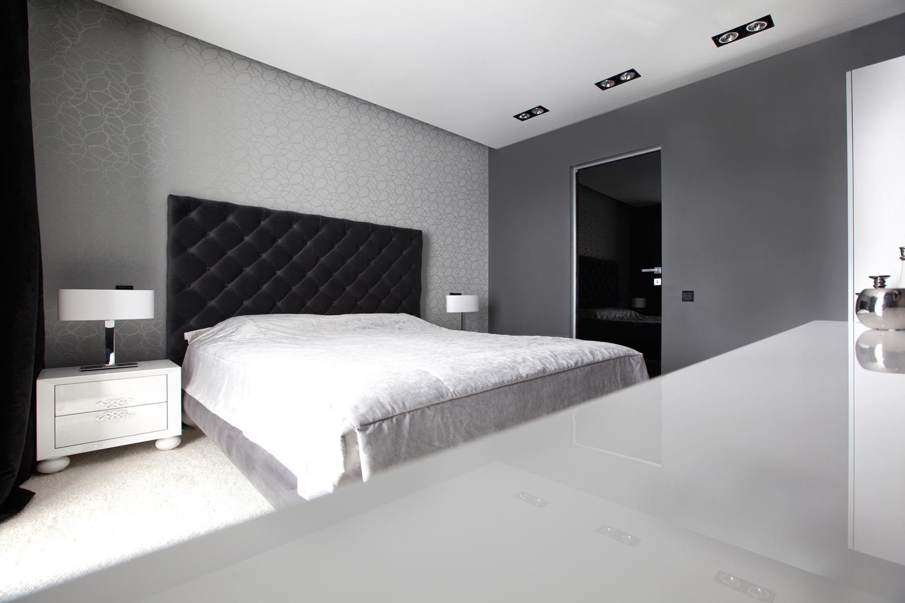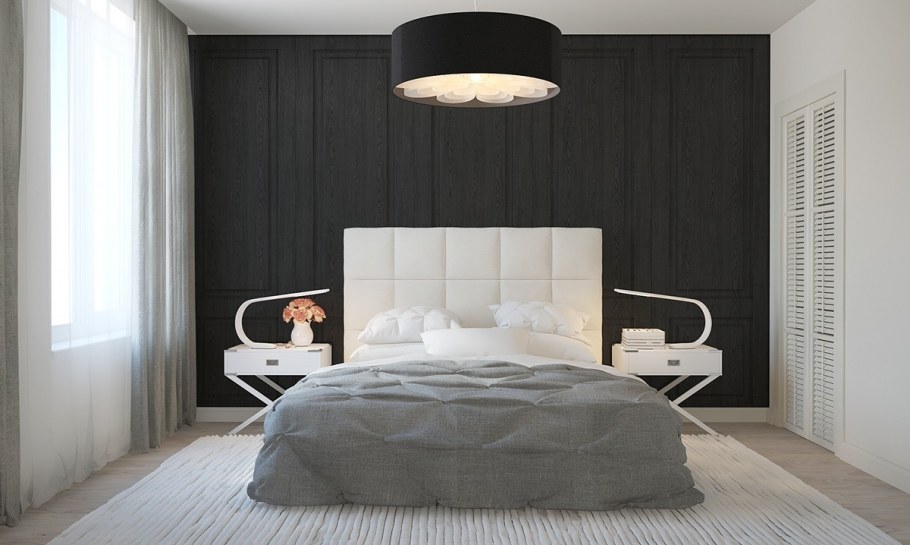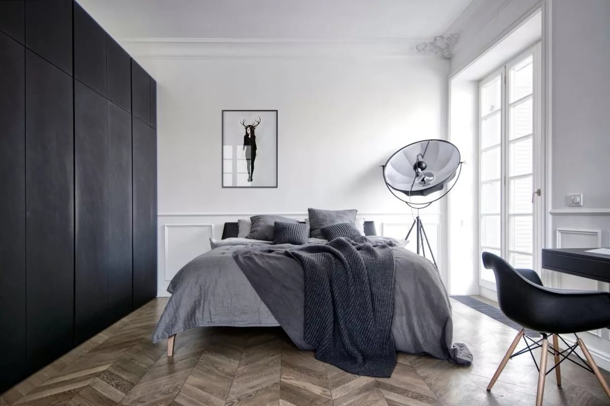 Черно белая спальня