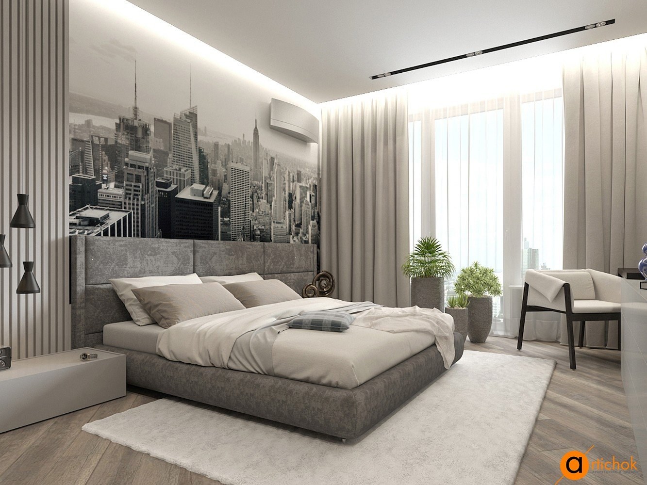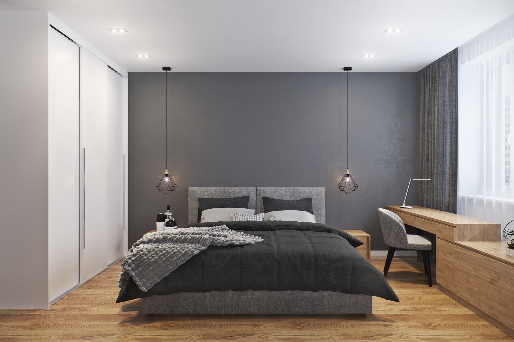 Спальня в серых тонах