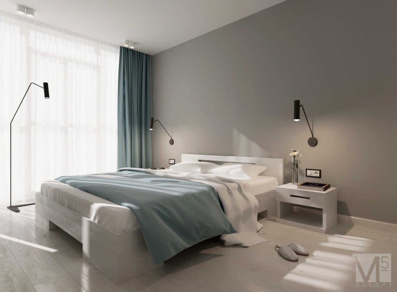 Голубая спальня Минимализм