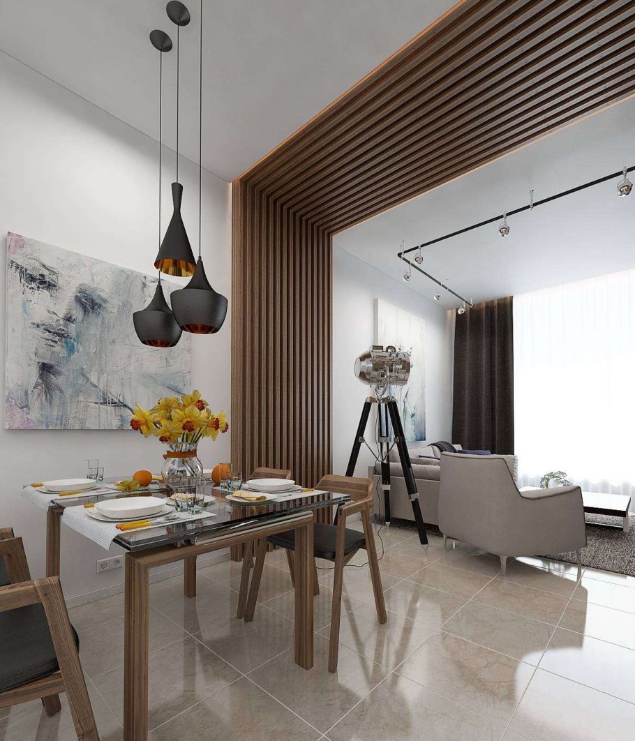 Рейки на кухне в интерьере стене деревянные (79 фото)