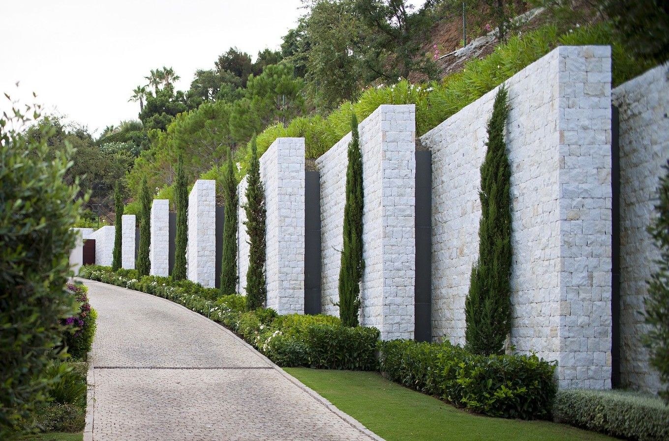 Забор с каменными столбами