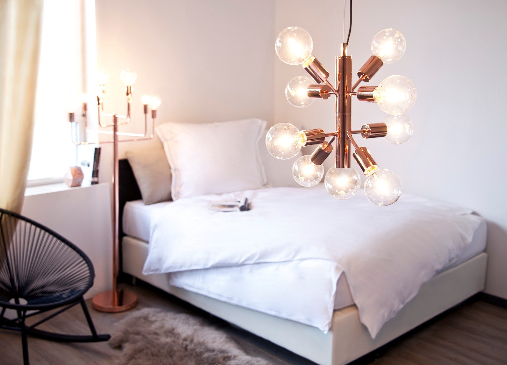 Люстры для спальни в интерьере для маленьких комнат (74 фото)