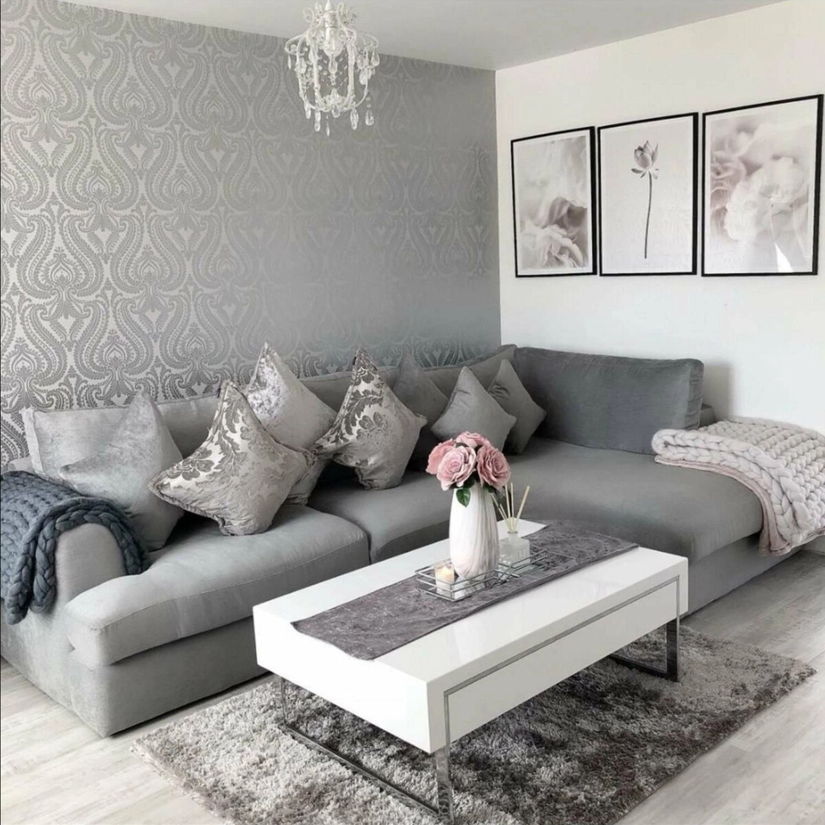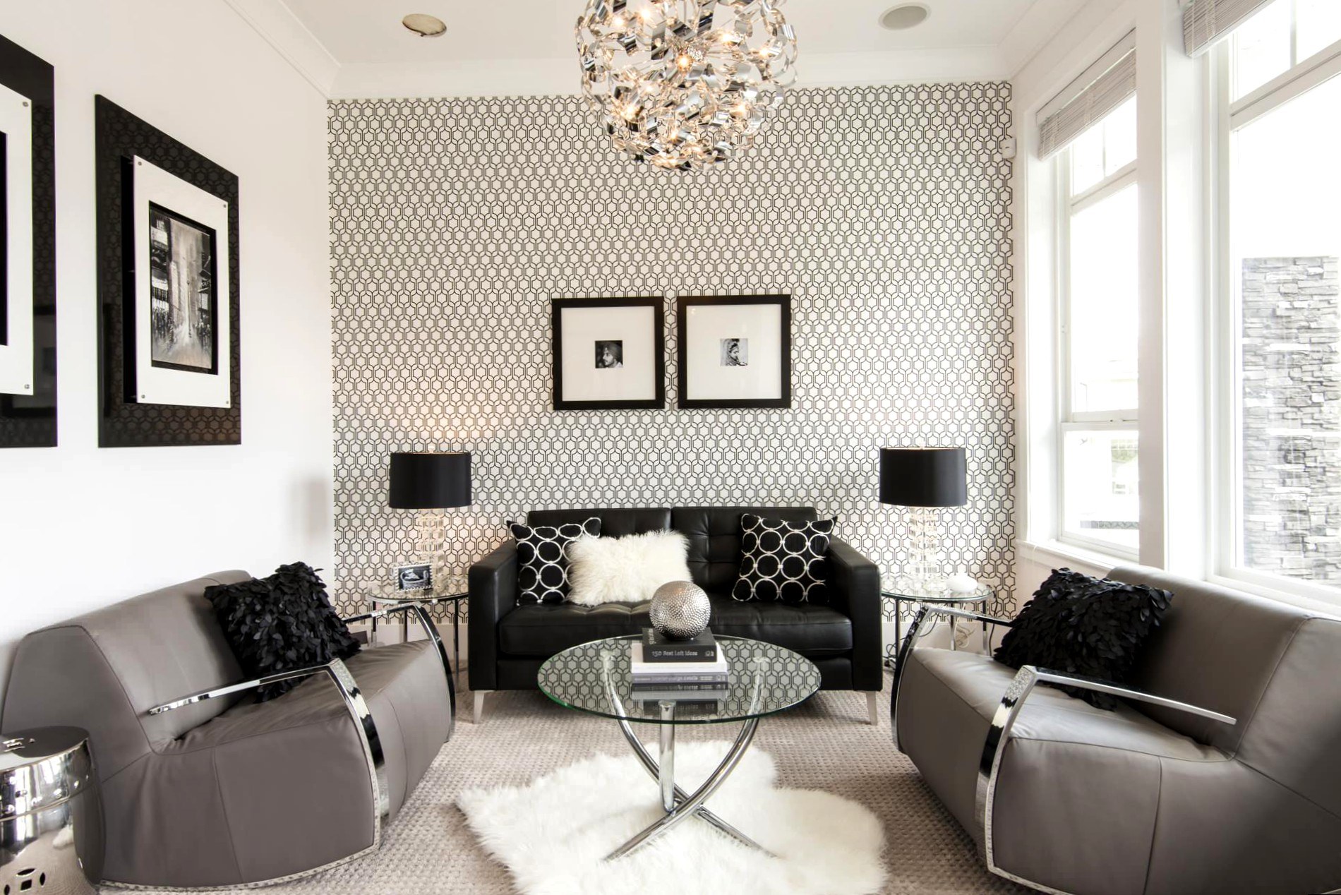 Серые обои в интерьере гостиной